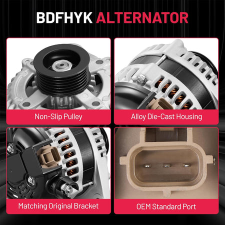 【Stable Output】The BDFHYK alternator delivers consistent power to all vehicle electronics while efficiently charging the battery. Engineered with premium components, it withstands heat, vibration, and harsh road conditions for extended service life