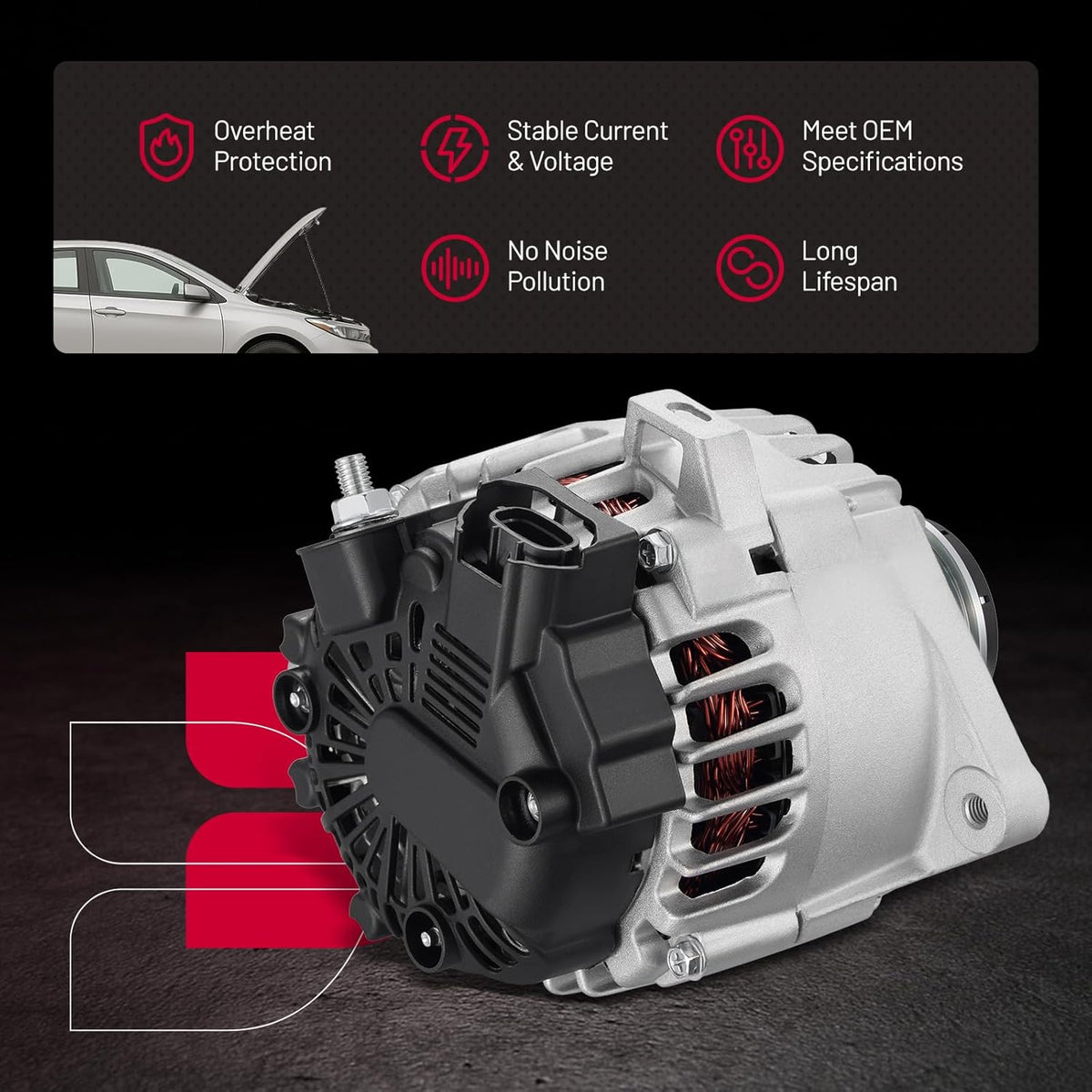 【Stable Output】 The BDFHYK alternator delivers consistent power to all vehicle electronics while efficiently charging the battery. Engineered with premium components, it withstands heat, vibration, and harsh road conditions for extended service life