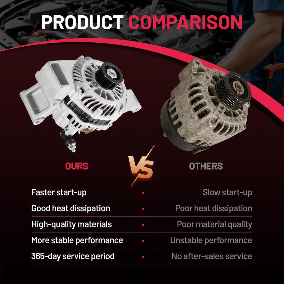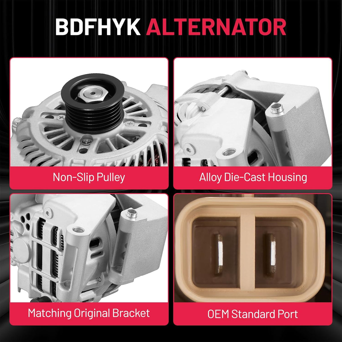 【Stable Output】The BDFHYK alternator delivers consistent power to all vehicle electronics while efficiently charging the battery. Engineered with premium components, it withstands heat, vibration, and harsh road conditions for extended service life