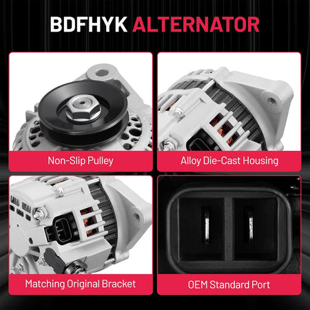 【Stable Output】The BDFHYK alternator delivers consistent power to all vehicle electronics while efficiently charging the battery. Engineered with premium components, it withstands heat, vibration, and harsh road conditions for extended service life