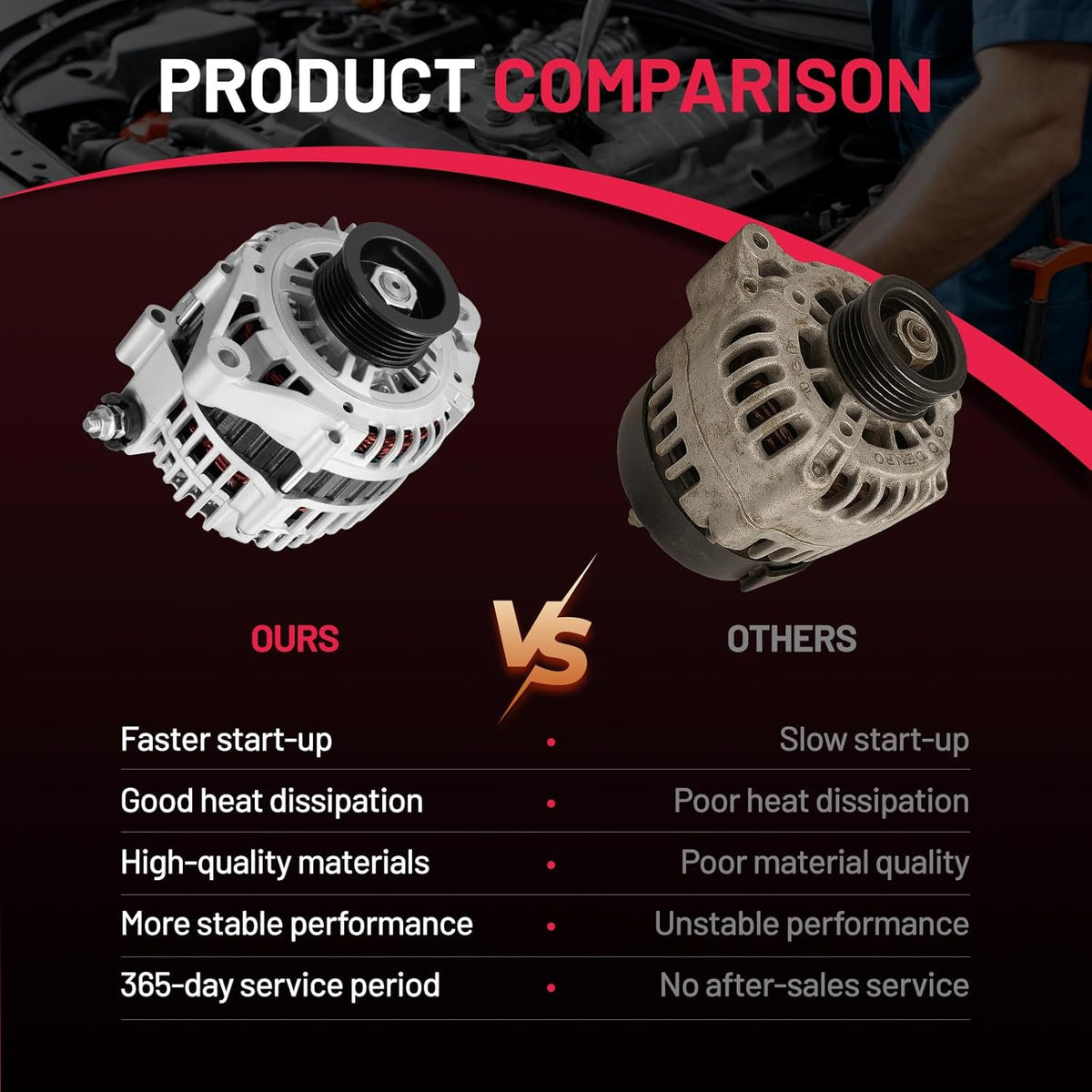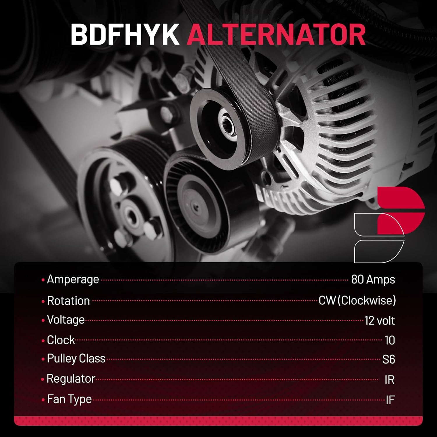 【Stable Output】The BDFHYK alternator delivers consistent power to all vehicle electronics while efficiently charging the battery. Engineered with premium components, it withstands heat, vibration, and harsh road conditions for extended service life