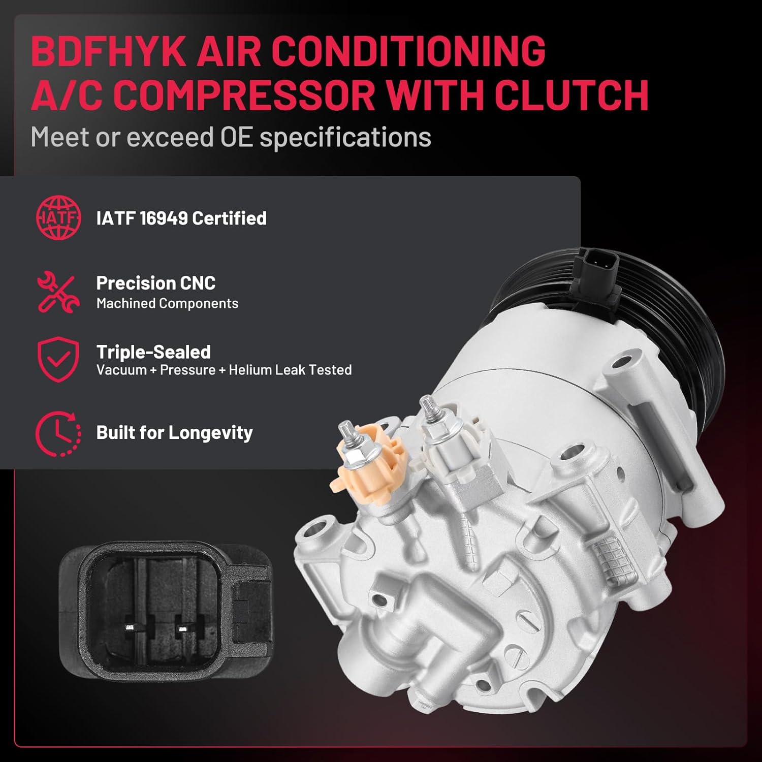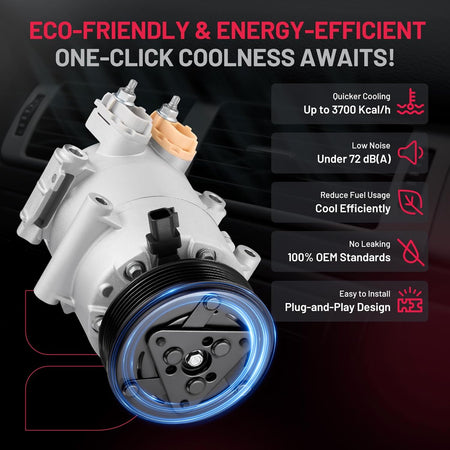 Reliability & Performance - 100% Brand New | IATF 16949 Certified | 50,000-Mile Accelerated Life Tested | Triple-Sealed: Vacuum + Pressure + Helium Leak Tested (99.9% Leak-Free) | Precision CNC-Machined Components | Faster Cooling & Quieter vs. Standard Compressors | Built for Longevity
