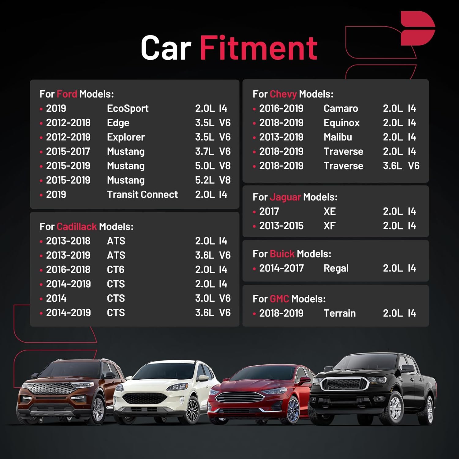 【Compatibility Information】:Spark Plug APP5863 Compatible with Buick Regal; Compatible with Cadillac ATS CT6 CTS; Compatible with Chevy Camaro Equinox Malibu Traverse; Compatible with Ford EcoSport Edge Explorer Mustang Transit Connect; Compatible with GMC Terrain; Compatible with Jaguar XE XF.Please see images or details page for complete Compatibility information.