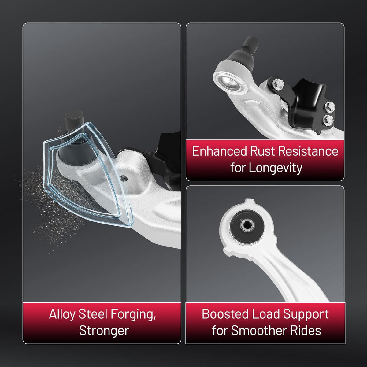 【Control Arm Features】The control arm improves stability, handling, and driving comfort, with a protective finish that helps extend service life. Made from forged alloy steel, it delivers reliable performance, reduces noise, and ensures accurate fitment for safe and consistent driving