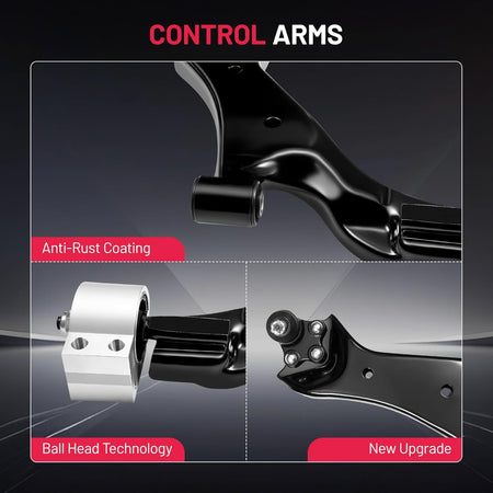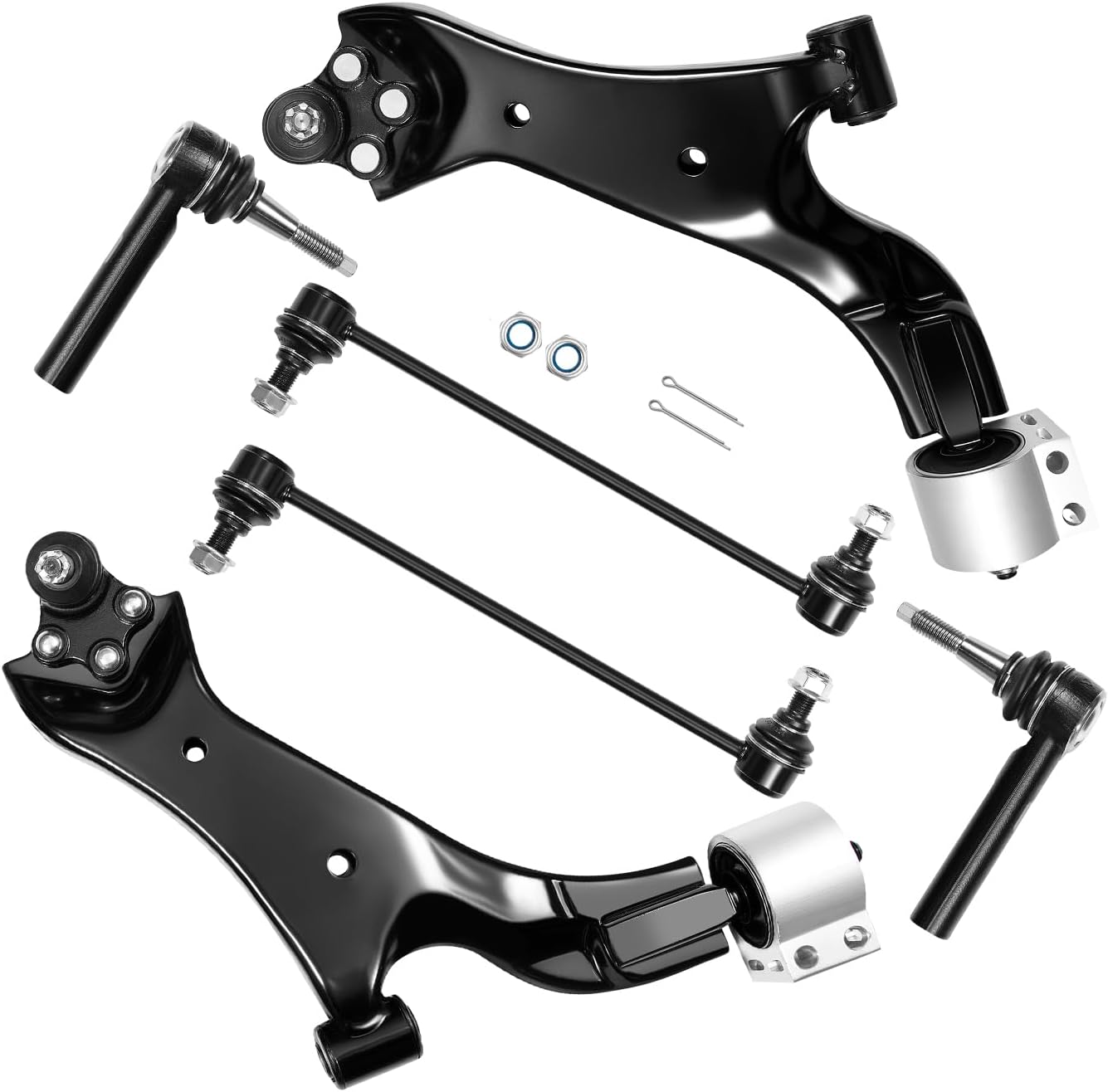 【Products contain】1x Front Lower Control Arm w/ Ball Joint Assembly - Driver Side - K623583,1x Front Lower Control Arm w/ Ball Joint Assembly - Passenger Side - K623582,1x Front Stabilizer Sway Bar End Link - Driver Side - K750188,1x Front Stabilizer Sway Bar End Link - Passenger Side - K750189,2x Front Outer Tie Rod End - ES800640