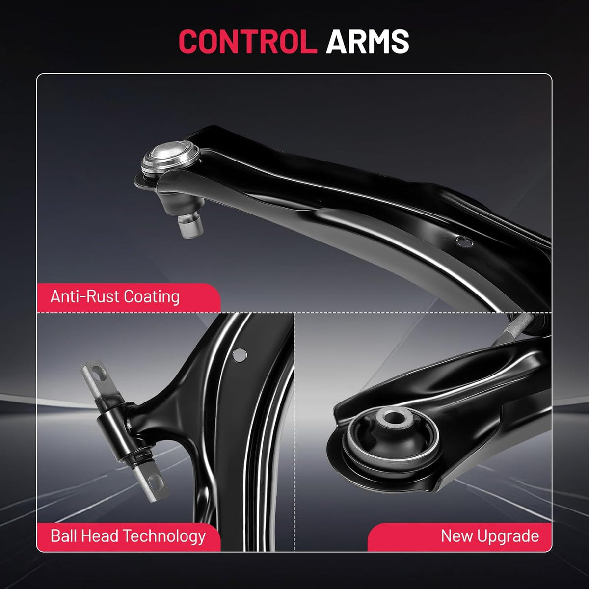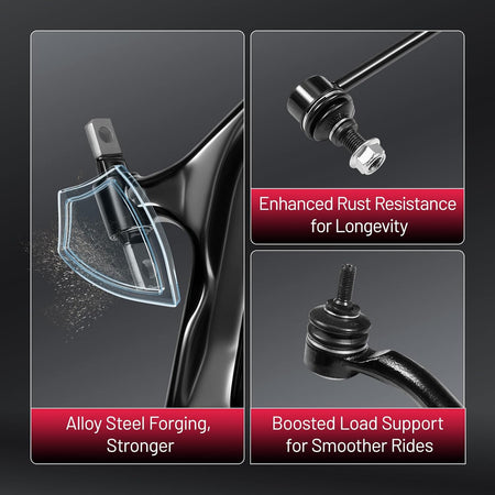 【Control Arm Features】The control arm improves stability, handling, and driving comfort, with a protective finish that helps extend service life. Made from forged alloy steel, it delivers reliable performance, reduces noise, and ensures accurate fitment for safe and consistent driving