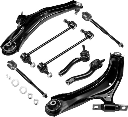 【Products contain】1x Front Lower Left Control Arm w/ Ball Joint - K620373,1x Front Lower Right Control Arm w/ Ball Joint - K620374,2x Front Stabilizer / Sway Bar End Link - K750096,1x Front Outer Left Tie Rod End Link - ES800575,1x Front Outer Right Tie Rod End Link - ES800574,2x Front Inner Tie Rod End Link - EV800820
