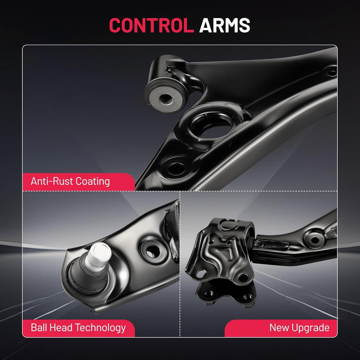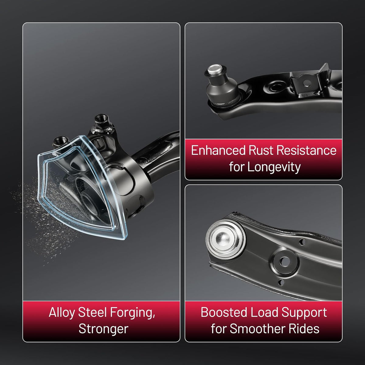 【Control Arm Features】 The control arm improves stability, handling, and driving comfort, with a protective finish that helps extend service life. Made from forged alloy steel, it delivers reliable performance, reduces noise, and ensures accurate fitment for safe and consistent driving