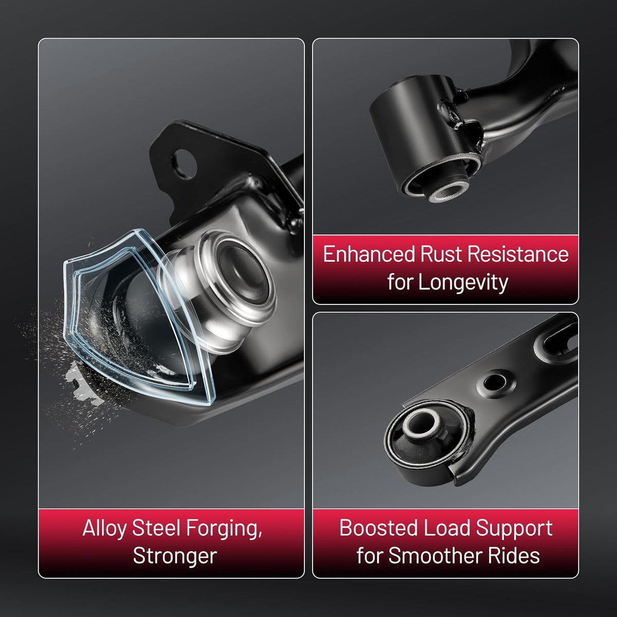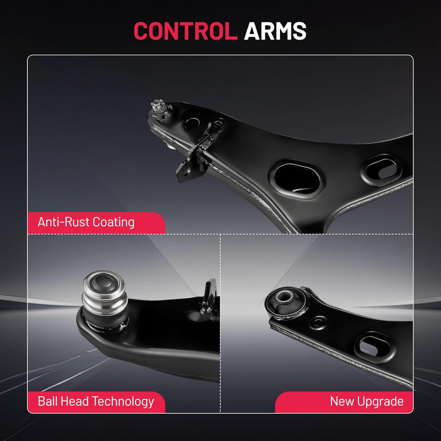 【Control Arm Features】 The control arm improves stability, handling, and driving comfort, with a protective finish that helps extend service life. Made from forged alloy steel, it delivers reliable performance, reduces noise, and ensures accurate fitment for safe and consistent driving