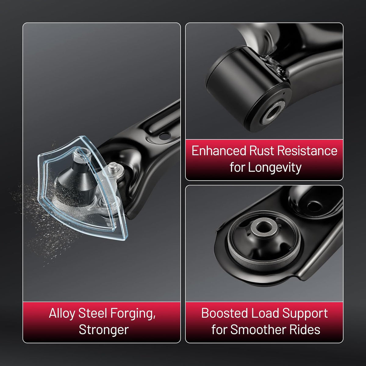 【Control Arm Features】 The control arm improves stability, handling, and driving comfort, with a protective finish that helps extend service life. Made from forged alloy steel, it delivers reliable performance, reduces noise, and ensures accurate fitment for safe and consistent driving