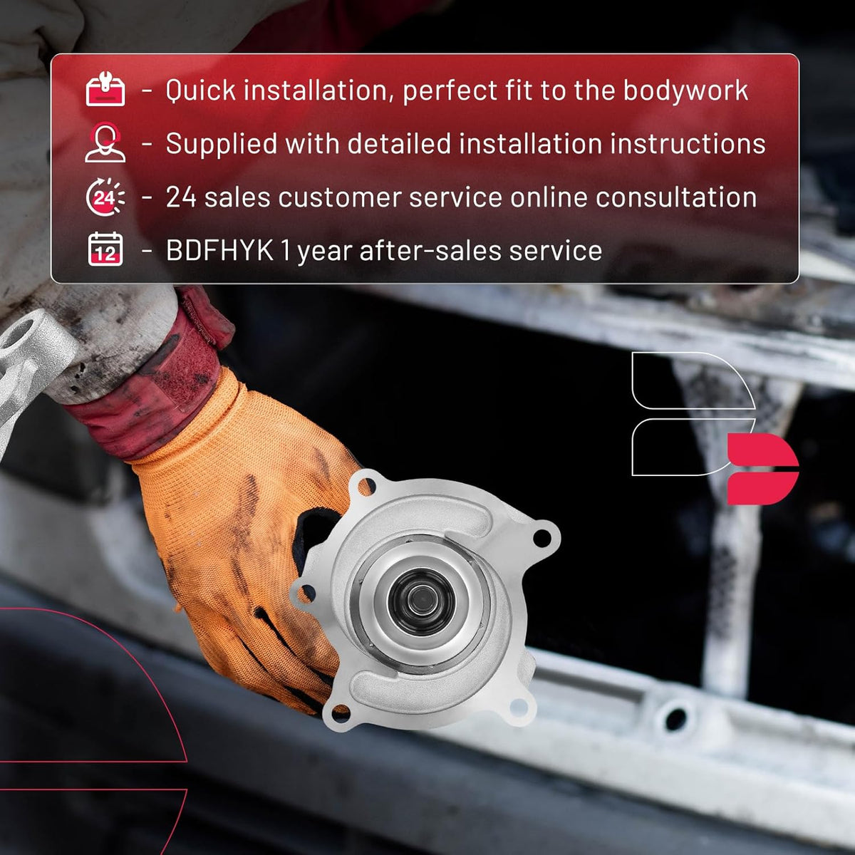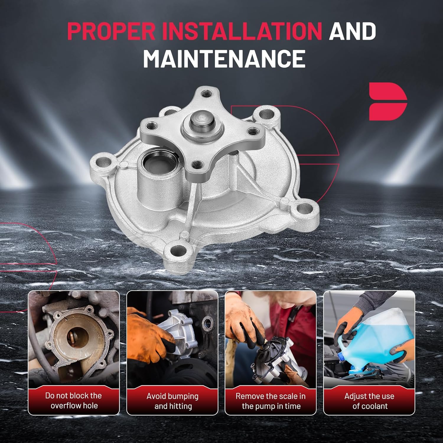 [PREMIUM QUALITY] This engine water pump is manufactured in ISO/TS16949 2009 certified facilities, built to meet or exceed OE specifications, Undergone a rigorous testing before shipping to ensure 100% reliability and leak-free performance.