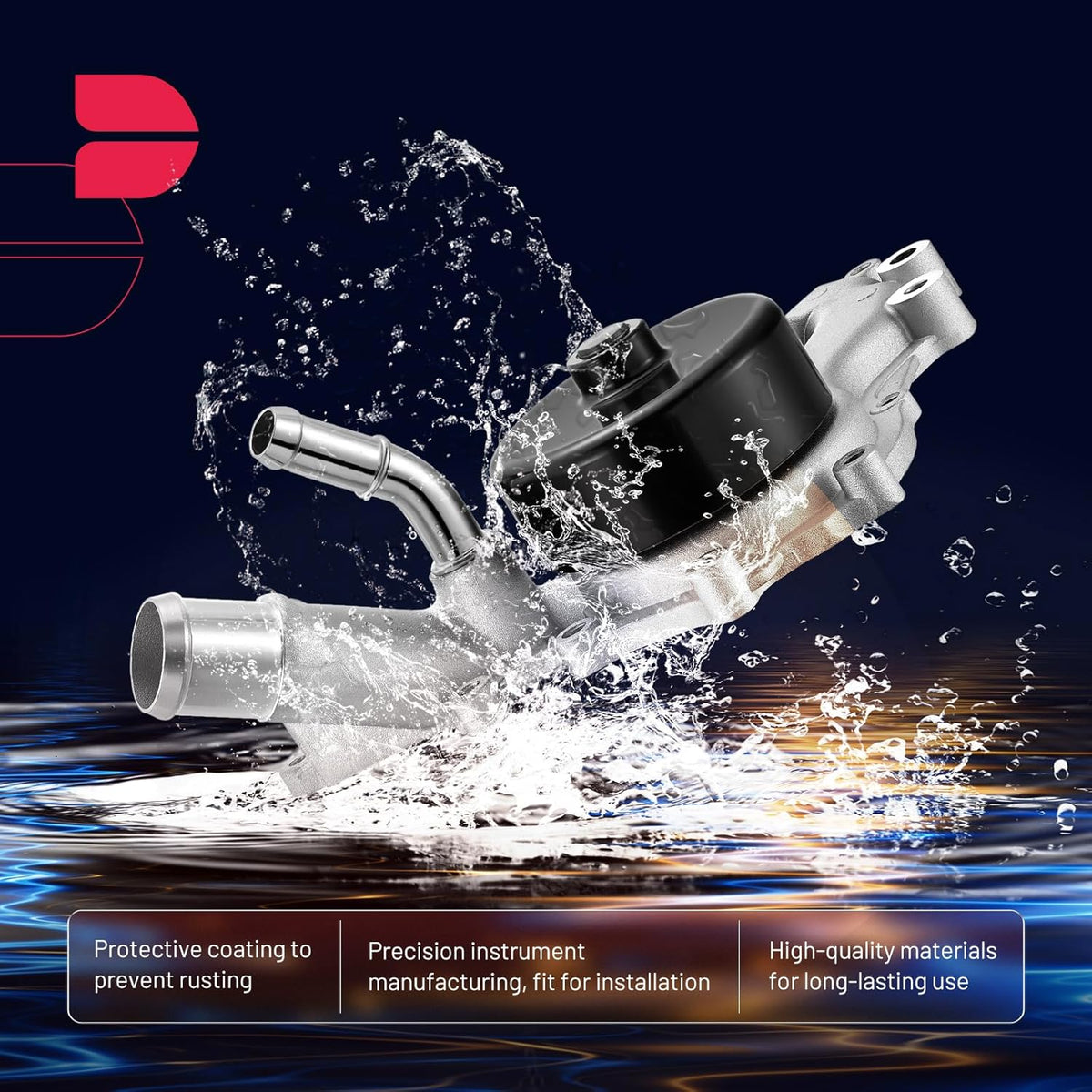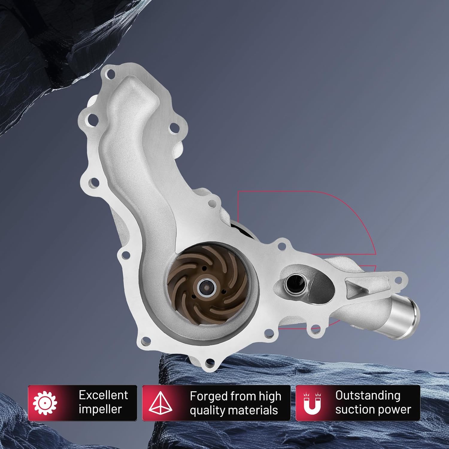 [FEATURE] Case hardened bearings for long life, high load capacity and better tolerance to imbalance or vibration in the cooling system. Precision CNC machined surfaces for a leak free install, long component life and maximum efficiency. Metal impeller integration to handle higher torque forces and higher temperatures. All gaskets included