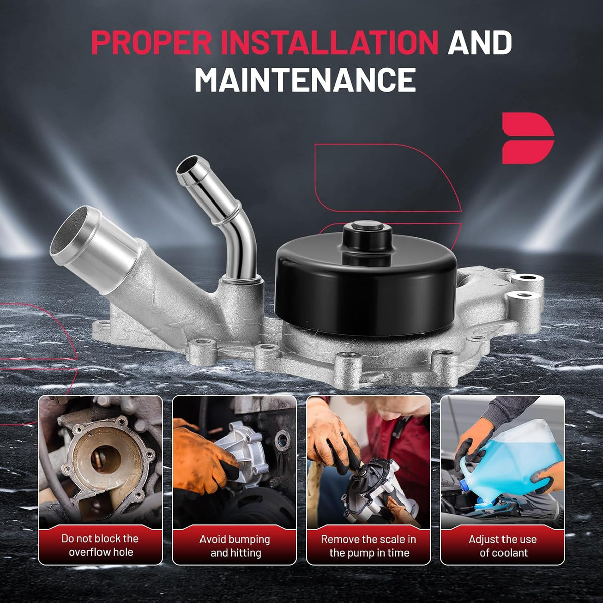 [PREMIUM QUALITY] This engine water pump is manufactured in ISO/TS16949 2009 certified facilities, built to meet or exceed OE specifications, Undergone a rigorous testing before shipping to ensure 100% reliability and leak-free performance.
