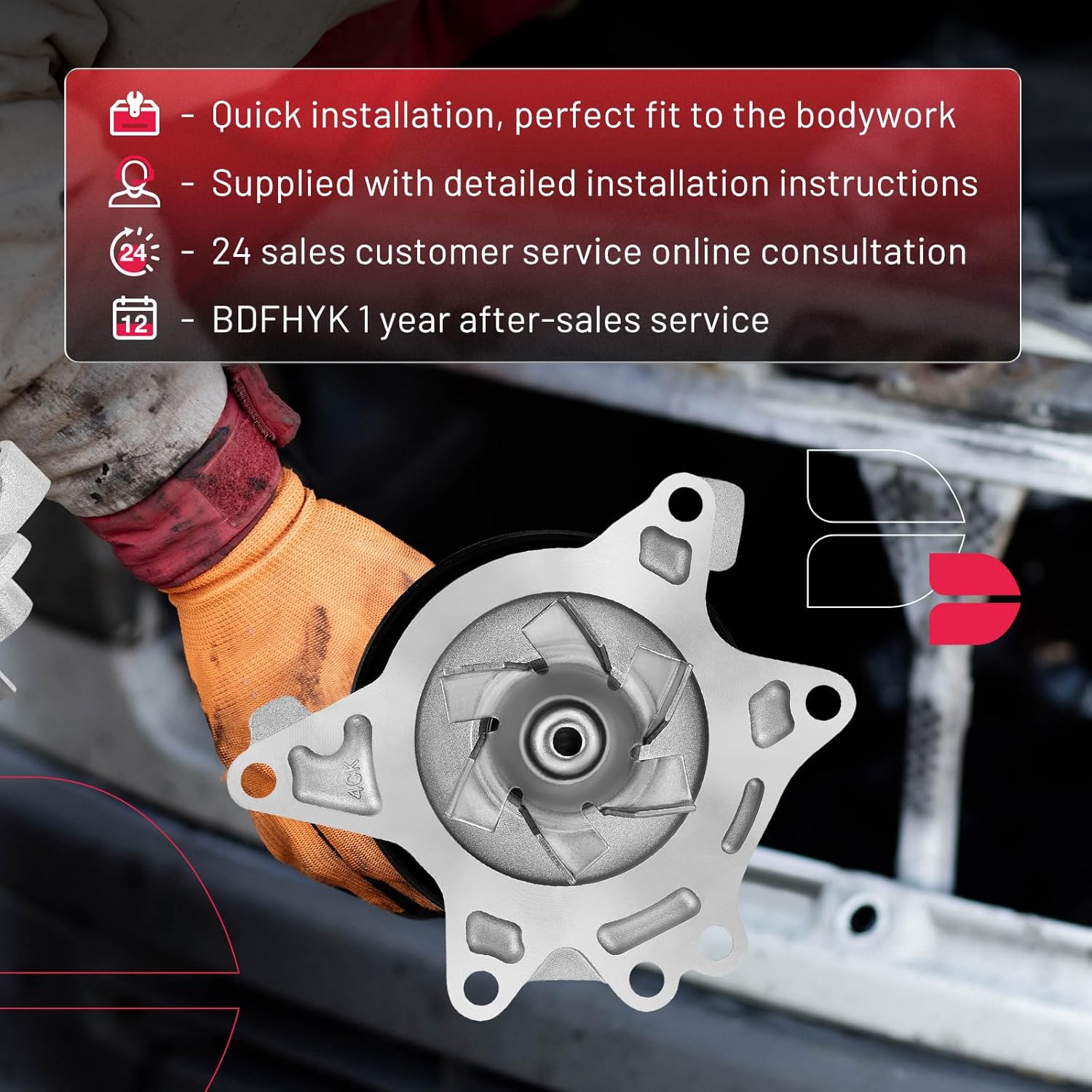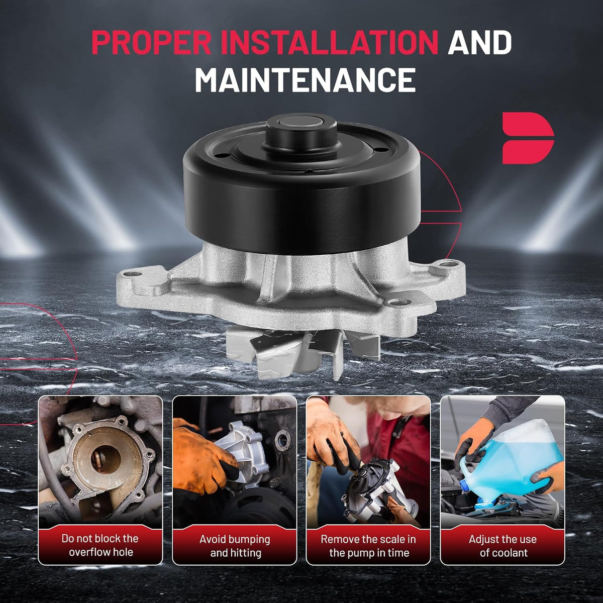 [PREMIUM QUALITY] This engine water pump is manufactured in ISO/TS16949 2009 certified facilities, built to meet or exceed OE specifications, Undergone a rigorous testing before shipping to ensure 100% reliability and leak-free performance.