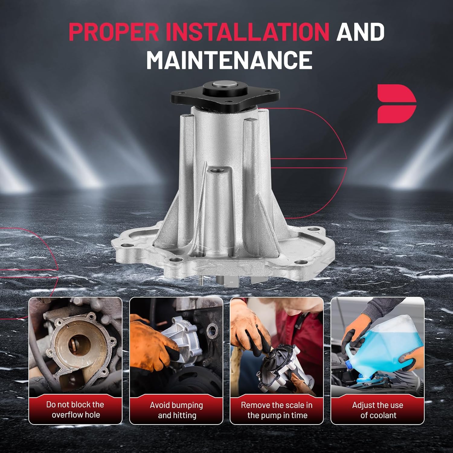 [PREMIUM QUALITY] This engine water pump is manufactured in ISO/TS16949 2009 certified facilities, built to meet or exceed OE specifications, Undergone a rigorous testing before shipping to ensure 100% reliability and leak-free performance.