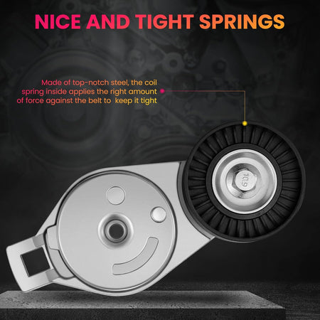 【COMPATIBLE VEHICLES】Our drive belt tensioners compatible with Chrysler Town & Country 2001-2007 3.3L 3.8L V6, for Voyager 2001-2003 3.3L V6; Compatible with Dodge Caravan 2001-2007 3.3L V6; for Grand Caravan 2001-2007 3.3L 3.8L V6. Please confirm this item fits your vehicle before purchasing.