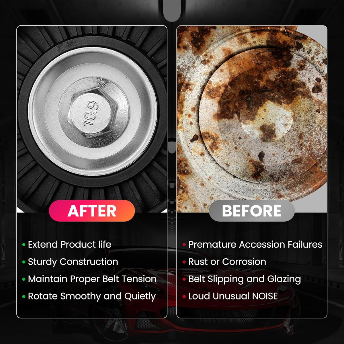 【STABILITY AND RELIABILITY】The drive belt tensioner is to adjust the tightness of the belt to maintain the stability and reliability of your car's transmission system more stable and reliable.BDFHYK drive belt tensioner can offer you a professional user experience and make your car like new. You may choose it with confidence.