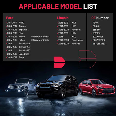 【Compatible Vehicles】2011-2018 F-150 2013-2014 Taurus 2013-2019 Explorer 2013-2019 Flex 2014-2019 Police Interceptor Sedan 2014-2019 Police Interceptor Utility 2015 Transit-150 2015-2018 Transit-250 2015 Transit-350 2015-2017 Expedition 2015-2018 Edge, For Lincoln Models: 2013-2019 MKT 2013-2016 MKS 2015-2020 Navigator 2016-2018 MKX 2018 MKC 2019-2020 Continental 2019-2020 Nautilus