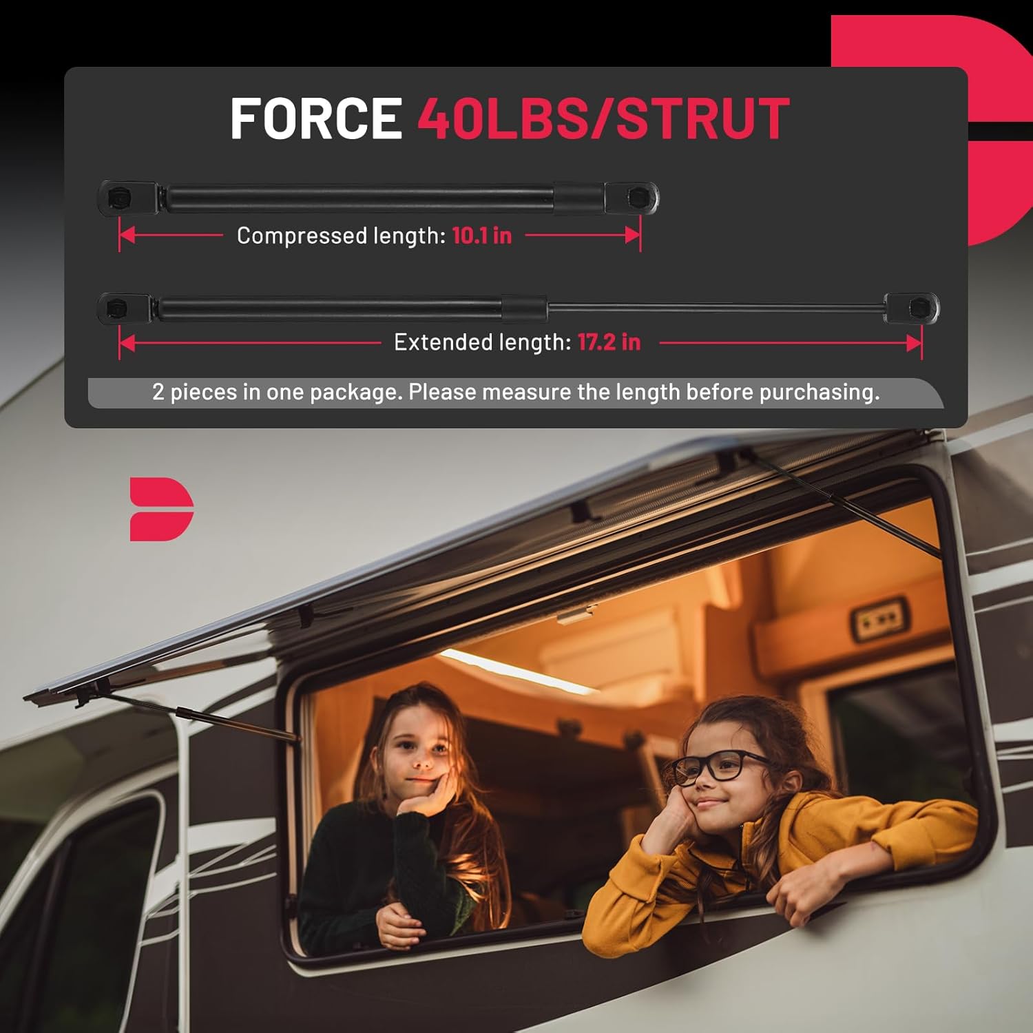 【Measure First】We recommend that measure weight and length before purchasing. It will be more convenient for your shopping experience. The lift support can be used for DIY, RV, or camper shell. Please check OE number:C16-06874,C1606874.Please notice that 40Lbs/17in gas shocks don't furnished with ball studs.