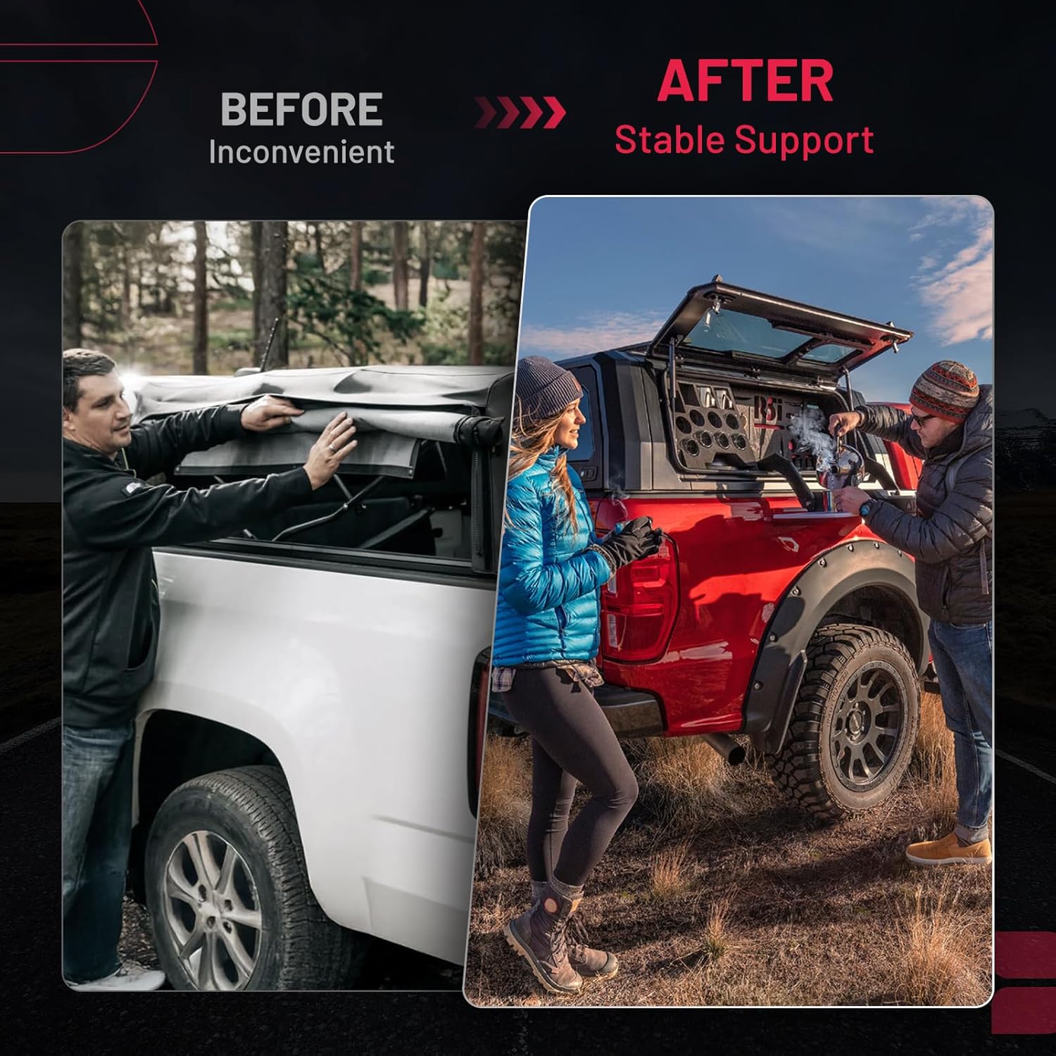 【Basic Info】The lift supports are universal and used for Camper shell side window, Pickup Truck Toolbox, most aluminum Weatherguard toolbox, Cabinet lid door, toolbox, boat lid, outdoor bench, trash bin lid. It's 13 inches from side to side. Each strut can support 35 Lbs weight. Please don't compress it with your hand. It has a 12+6-month warranty for any quality problem and lifetime customer service.