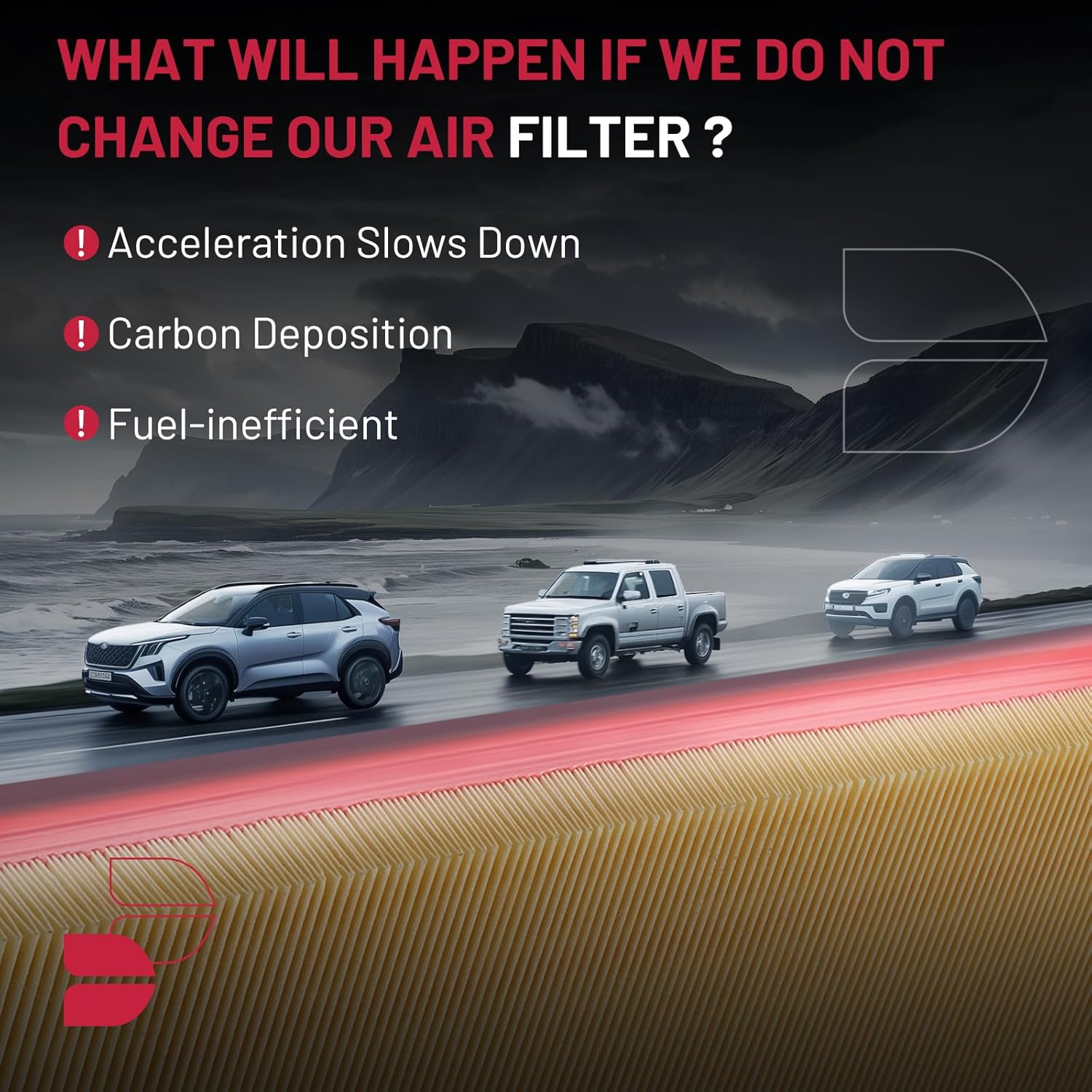 【SUGGESTION】To ensure that the vehicle air filter provides your engine with clean air, recommended replacement every 12 months, 12,000 miles or as specified by the vehicle manufacturer.