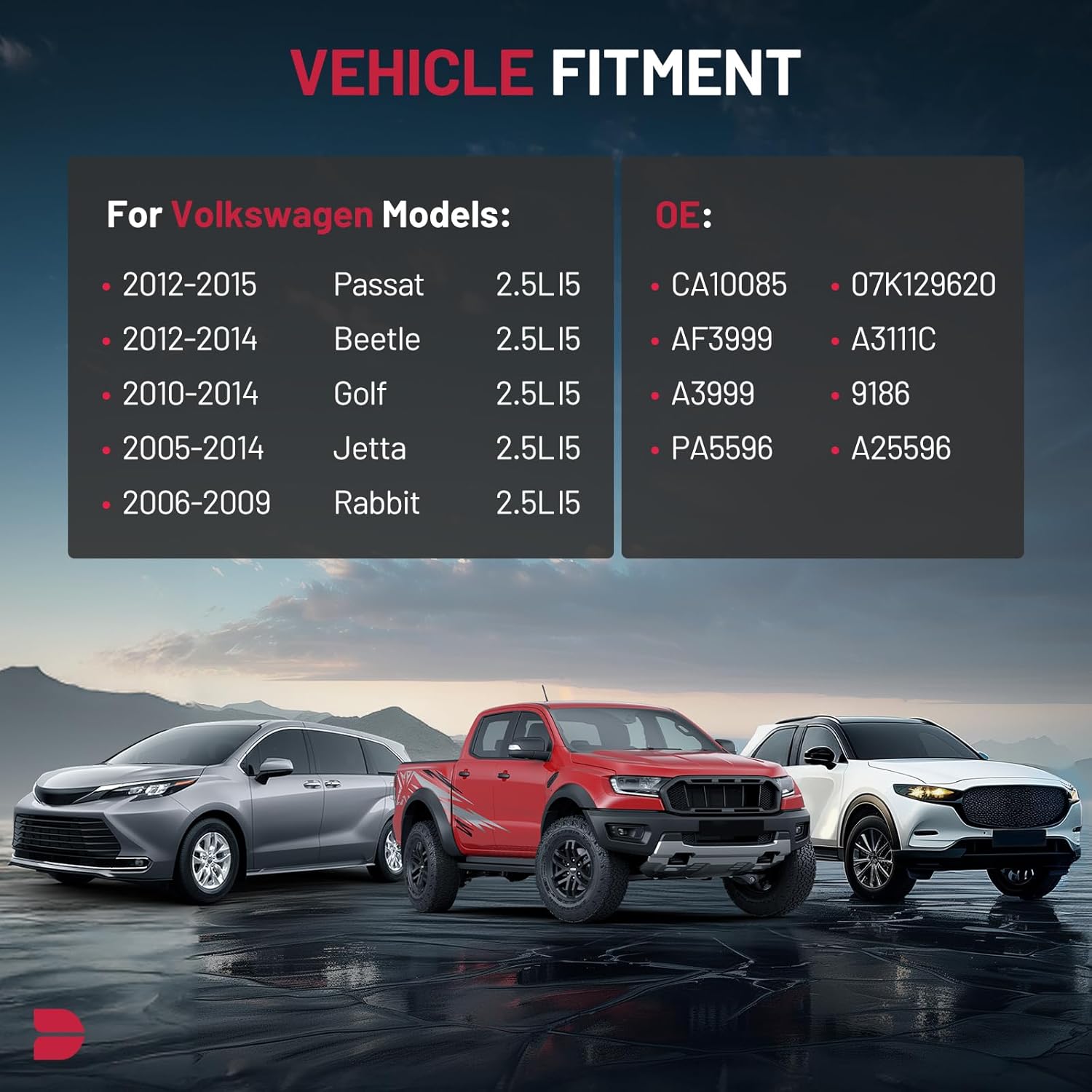 【COMPATIBILITY】Compatible with Volkswagen Beetle 2012-2014 L5 2.5L; for Golf 2010-2014 L5 2.5L; for Jetta 2005-2014 L5 2.5L; for Passat 2012-2015 L5 2.5L; for Rabbit 2006-2009 L5 2.5L.