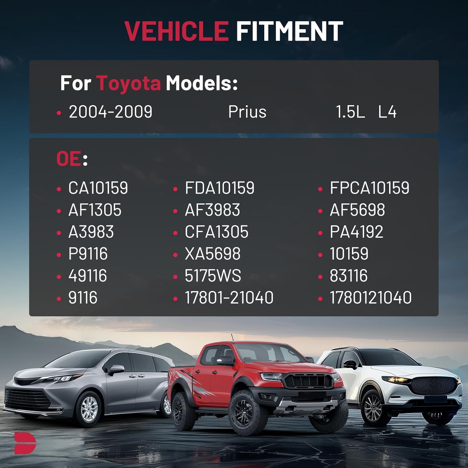 【REPLACES PART】CA10159, FDA10159, FPCA10159, AF1305, AF3983, AF5698, A3983, CFA1305, PA4192, P9116, XA5698, 10159, 49116, 5175WS, 83116, 9116, 17801-21040, 1780121040.