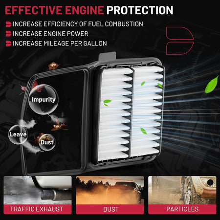 【FUNCTION】BDFHYK Engine Air Filter have deep filtering function, microporous filter media traps particles, protecting the engine from harmful cintaminants, playing a crucial role in the overall performance. A quality air filter can help extend the life of the engine.