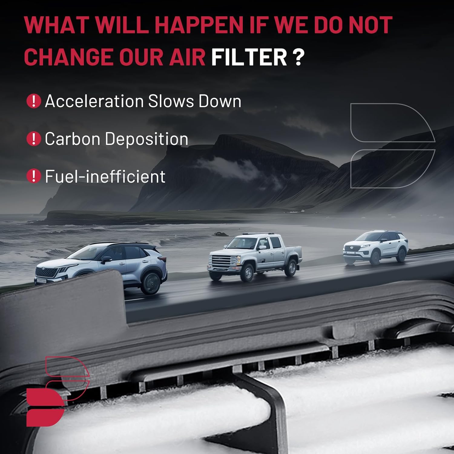 【SUGGESTION】To ensure that the vehicle air filter provides your engine with clean air, recommended replacement every 12 months, 12,000 miles or as specified by the vehicle manufacturer.