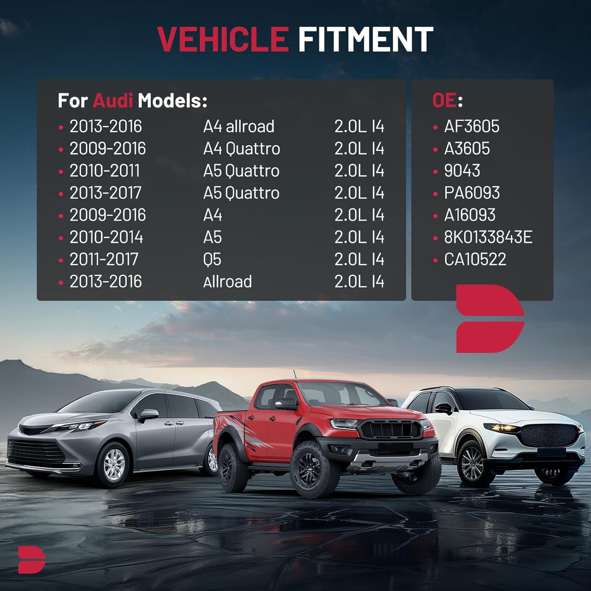 【COMPATIBILITY】Compatible with Audi A4 2009-2016 2.0L; A4 allroad 2013-2016 2.0L; A4 Quattro 2009-2016 2.0L; A5 2010-2014 2.0L; A5 Quattro 2010-2017 2.0L; Allroad 2013-2016 2.0L; Q5 2011-2017 2.0L.