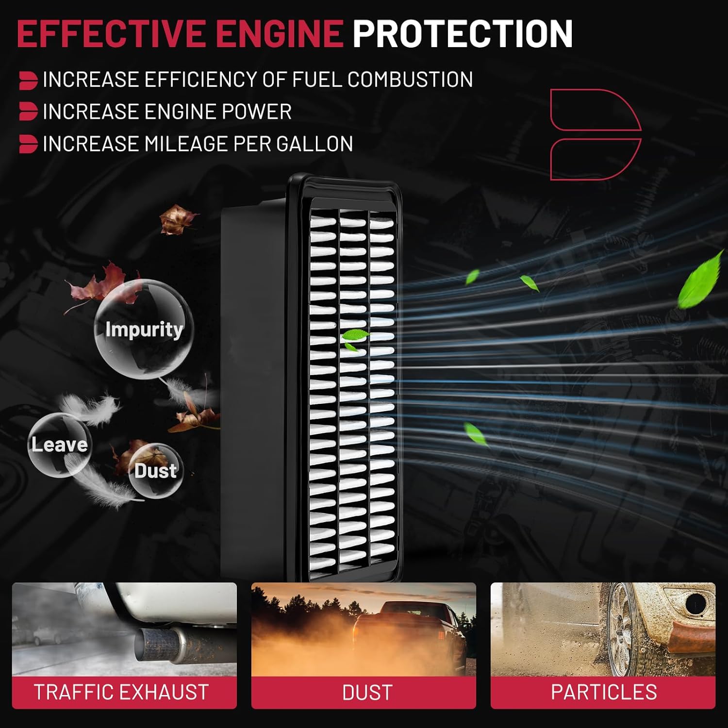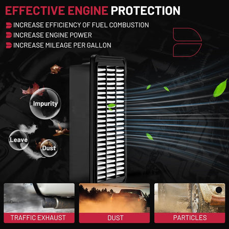 【FUNCTION】BDFHYK Engine Air Filter have deep filtering function, microporous filter media traps particles, protecting the engine from harmful cintaminants, playing a crucial role in the overall performance. A quality air filter can help extend the life of the engine.