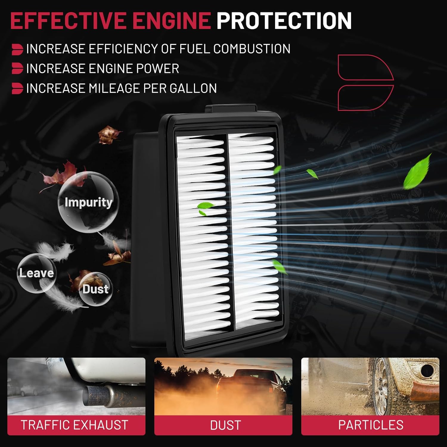 【FUNCTION】BDFHYK Engine Air Filter have deep filtering function, microporous filter media traps particles, protecting the engine from harmful cintaminants, playing a crucial role in the overall performance. A quality air filter can help extend the life of the engine.