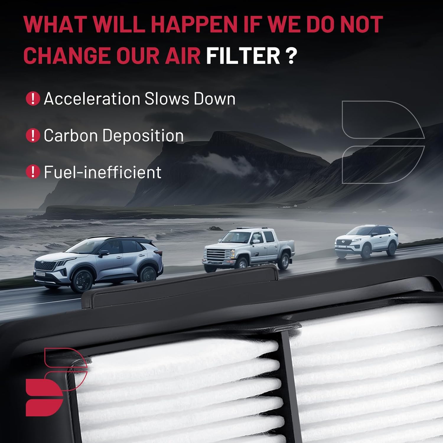 【SUGGESTION】To ensure that the vehicle air filter provides your engine with clean air, recommended replacement every 12 months, 12,000 miles or as specified by the vehicle manufacturer.