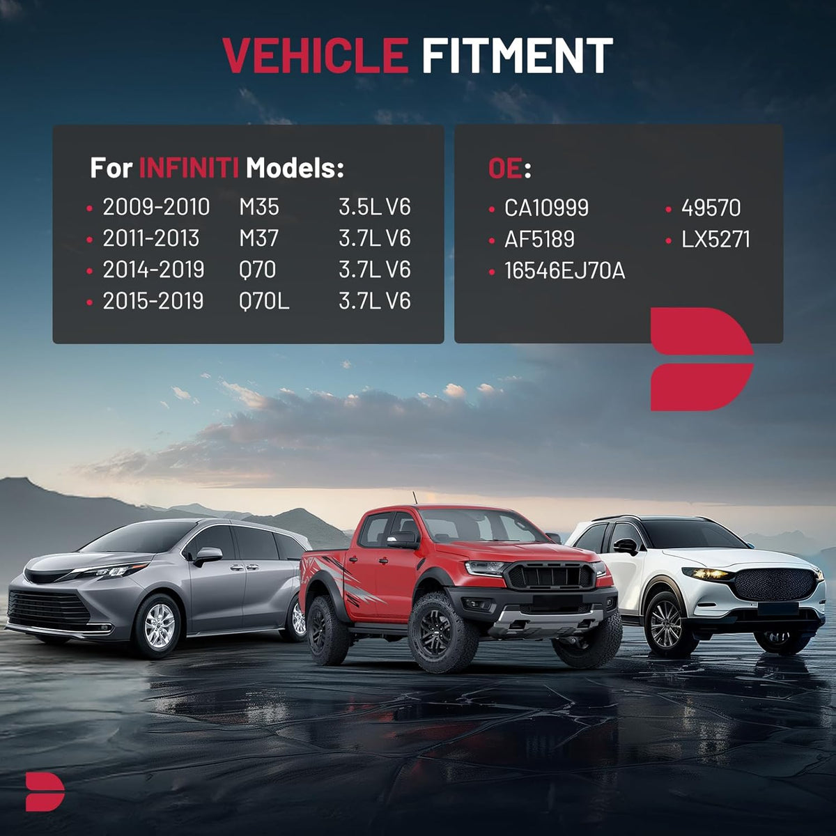 【REPLACES PART】CA10999, 49570, AF5189, LX5271, 16546EJ70A.