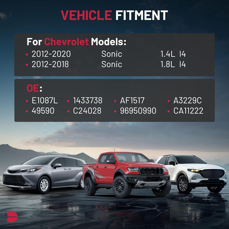 【COMPATIBILITY】Compatible with Chevrolet Sonic 2012 2013 2014 2015 2016 2017 2018 2019 2020 1.4L 1.8L with Flexible Panel Air Filter.