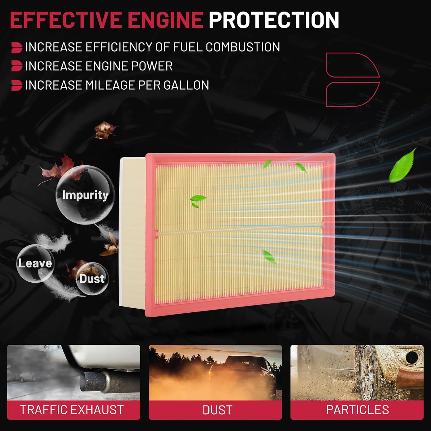 【FUNCTION】BDFHYK Engine Air Filter have deep filtering function, microporous filter media traps particles, protecting the engine from harmful cintaminants, playing a crucial role in the overall performance. A quality air filter can help extend the life of the engine.
