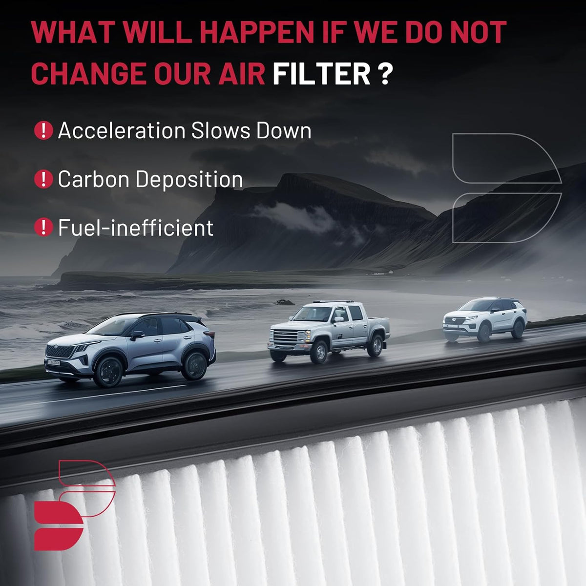 【SUGGESTION】To ensure that the vehicle air filter provides your engine with clean air, recommended replacement every 12 months, 12,000 miles or as specified by the vehicle manufacturer.