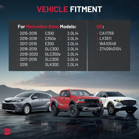 【COMPATIBILITY】Compatible with Mercedes-Benz C300 2015-2018 L4 2.0L, C350e 2016-2018 L4 2.0L, E300 2017-2019 L4 2.0L, GLC300 2016-2019 L4 2.0L, GLC350e 2018-2020 L4 2.0L, SLC300 2017-2019 L4 2.0L, SLK300 2016-2016 L4 2.0L.