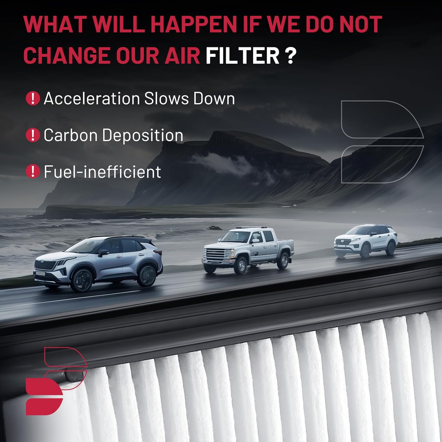【SUGGESTION】To ensure that the vehicle air filter provides your engine with clean air, recommended replacement every 12 months, 12,000 miles or as specified by the vehicle manufacturer.