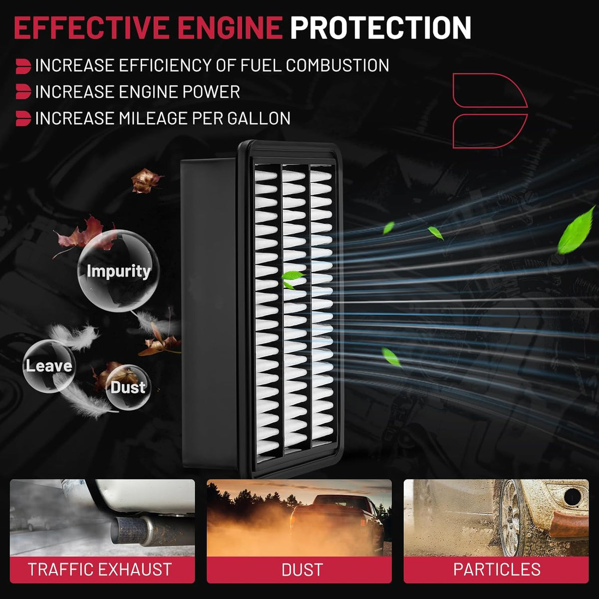 【FUNCTION】BDFHYK Engine Air Filter have deep filtering function, microporous filter media traps particles, protecting the engine from harmful cintaminants, playing a crucial role in the overall performance. A quality air filter can help extend the life of the engine.