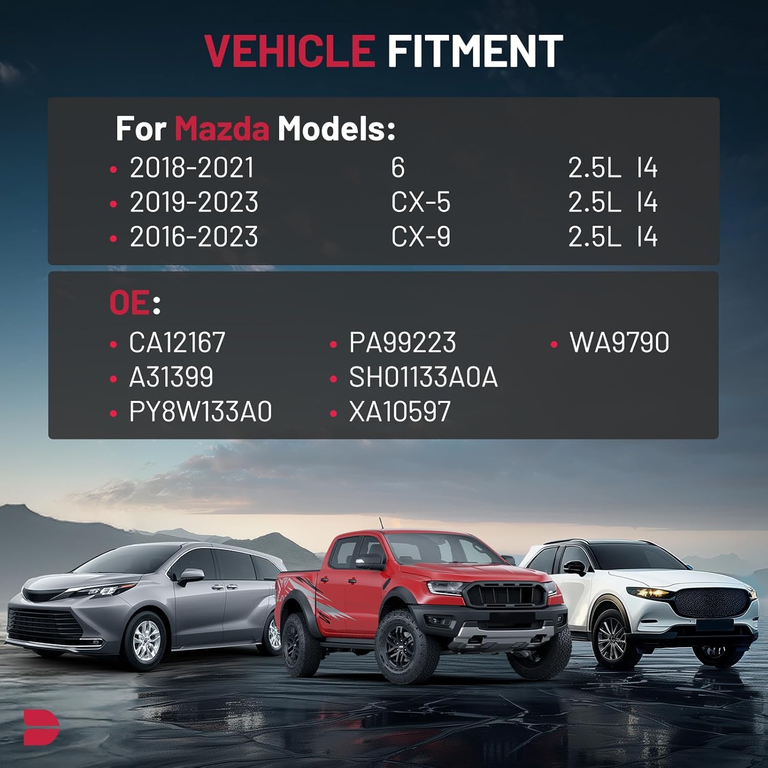 【COMPATIBILITY】Compatible with Mazda 6 2018-2021 L4 2.5L, CX-5 2019-2023 L4 2.5L, CX-9 2016-2023 L4 2.5L.