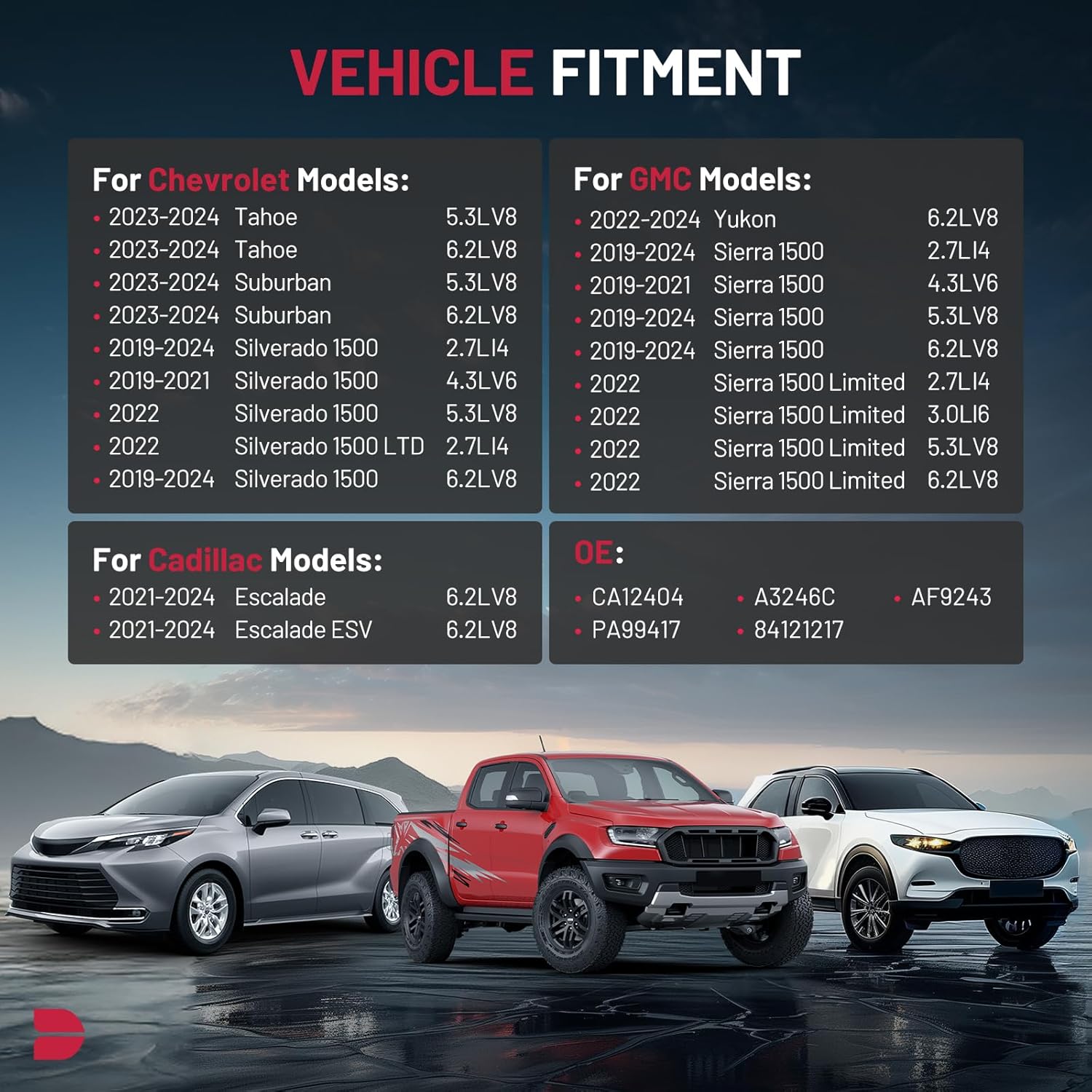 【COMPATIBILITY】Compatible with Cadillac Escalade/Escalade ESV 2021-2023; Compatible with Chevrolet Silverado 1500 2019-2023, Silverado 1500 LTD 2022, Suburban/Tahoe 2021-2023; Compatible with GMC Sierra 1500 2019-2024, Sierra 1500 Limited 2022, Yukon 2022-2024.