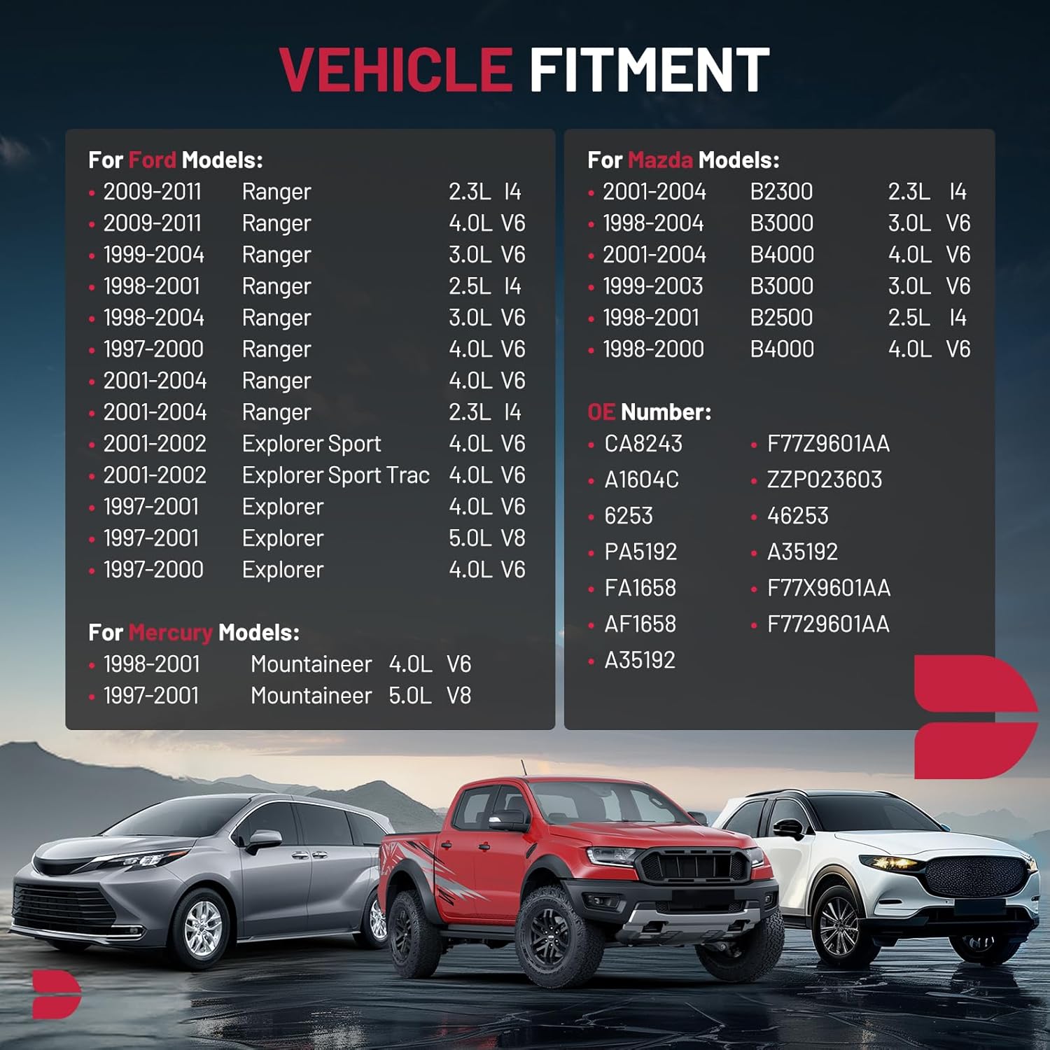 【COMPATIBILITY】Compatible with Compatible with Ford Explorer 1997-2001, Explorer Sport 2001-2002, Explorer Sport Trac 2001-2002, Ranger 1997-2004 2009-2011, B2300 2001-2004, B2500 1998-2001, B3000/B4000 1998-2004; Compatible with Mercury Mountaineer 1997.