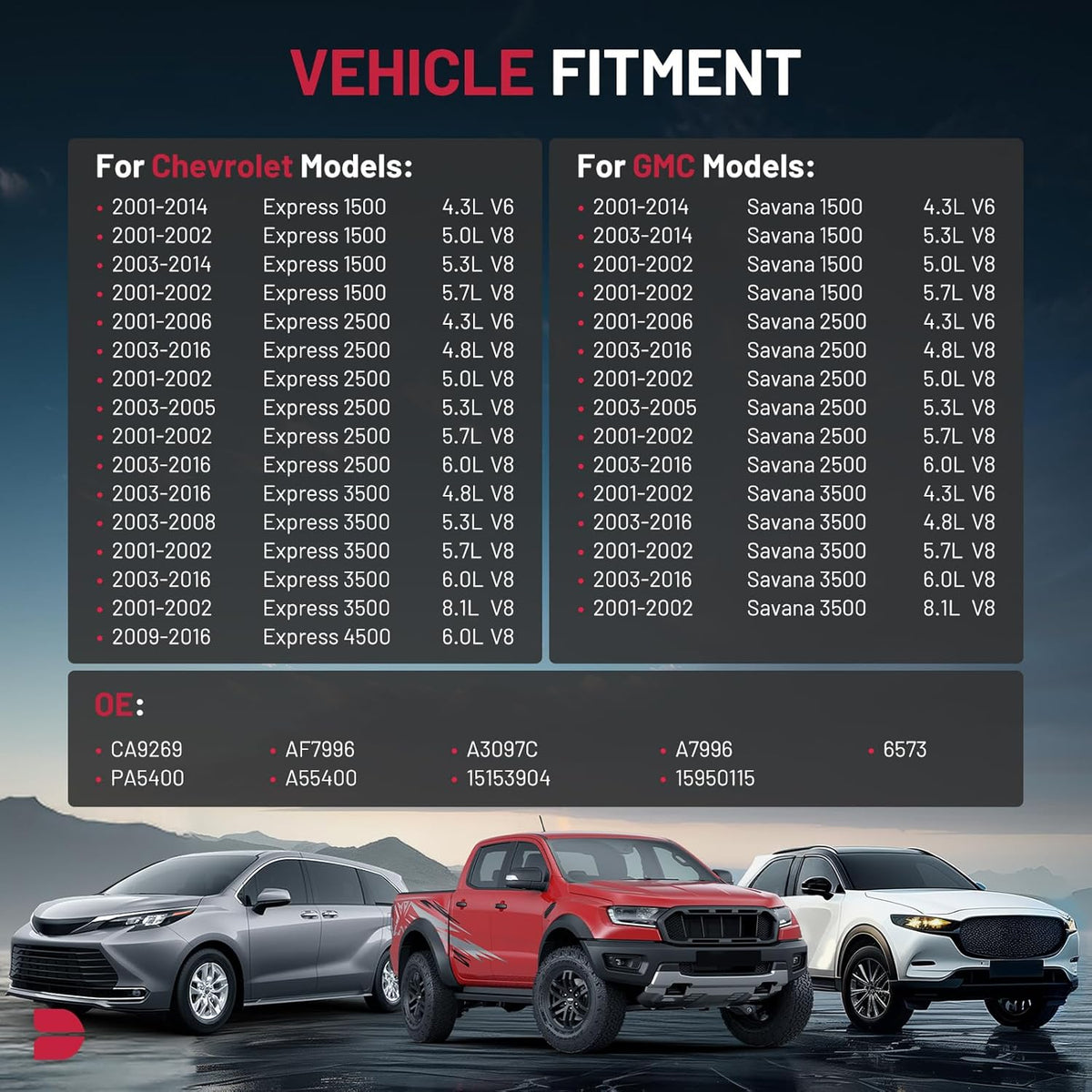 【COMPATIBILITY】Compatible with Chevrolet Express 1500 2001-2014, Express 2500 2001-2015, Express 3500 2001-2016, Express 4500 2009-2016; Compatible with GMC Savana 1500 2001-2014, Savana 2500 2001-2016, Savana 3500 2001-2016.