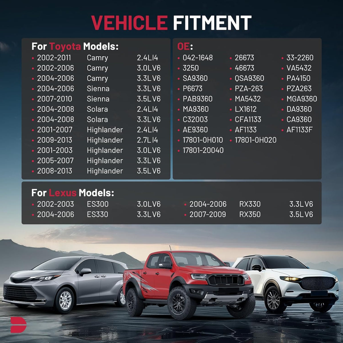BDFHYK CA9360 Engine Air Filter Compatible with Toyota Camry 02-06, Highlander 01-13, Sienna 04-10, Solara 04-08, Compatible with Lexus ES300 02-03, RX330 04-06, RX350 07-09