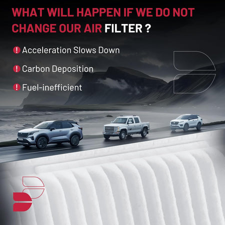 【SUGGESTION】To ensure that the vehicle air filter provides your engine with clean air, recommended replacement every 12 months, 12,000 miles or as specified by the vehicle manufacturer.