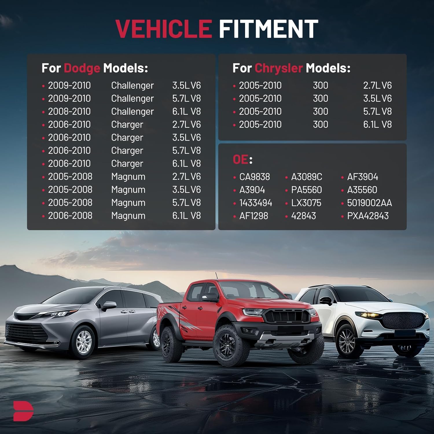 【COMPATIBILITY】Compatible with Compatible with Chrysler 300 2005-2010 2.7L 3.5L 5.7L 6.1L; Compatible with Dodge Challenger 2008-2010 3.5L 5.7L 6.1L, Charger 2006-2010 2.7L 3.5L 5.7L 6.1L, Magnum 2005-2008 2.7L 3.5L 5.7L 6.1L.