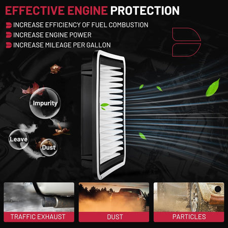 【SUGGESTION】To ensure that the vehicle air filter provides your engine with clean air, recommended replacement every 12 months, 12,000 miles or as specified by the vehicle manufacturer.