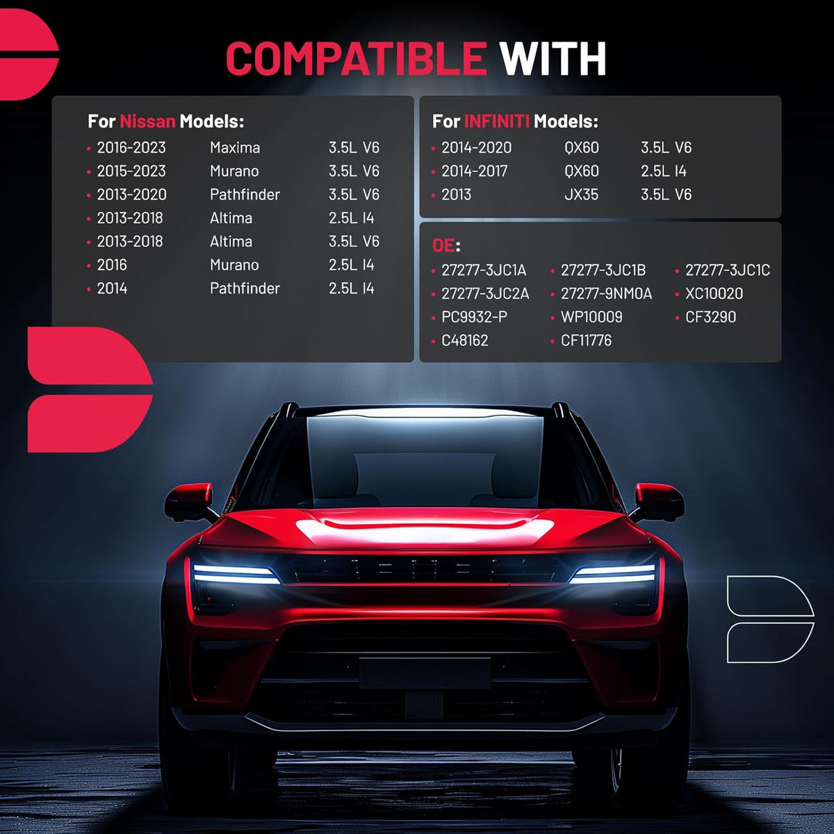 【Compatible Replacement】Compatible with Nissan Models: 2016-2023 Maxima 3.5L V6/2015-2023 Murano 3.5L V6/2013-2020 Pathfinder 3.5L V6/2013-2018 Altima 2.5L l4/2013-2018 Altima 3.5L V6, 2016 Murano 2.5L l4/2014 Pathfinder 2.5L l4, Compatible with INFINITI Models: 2013 JX35 3.5L V6 ,2014-2020 QX60 3.5L V6, 2014-2017 QX60 2.5L l4