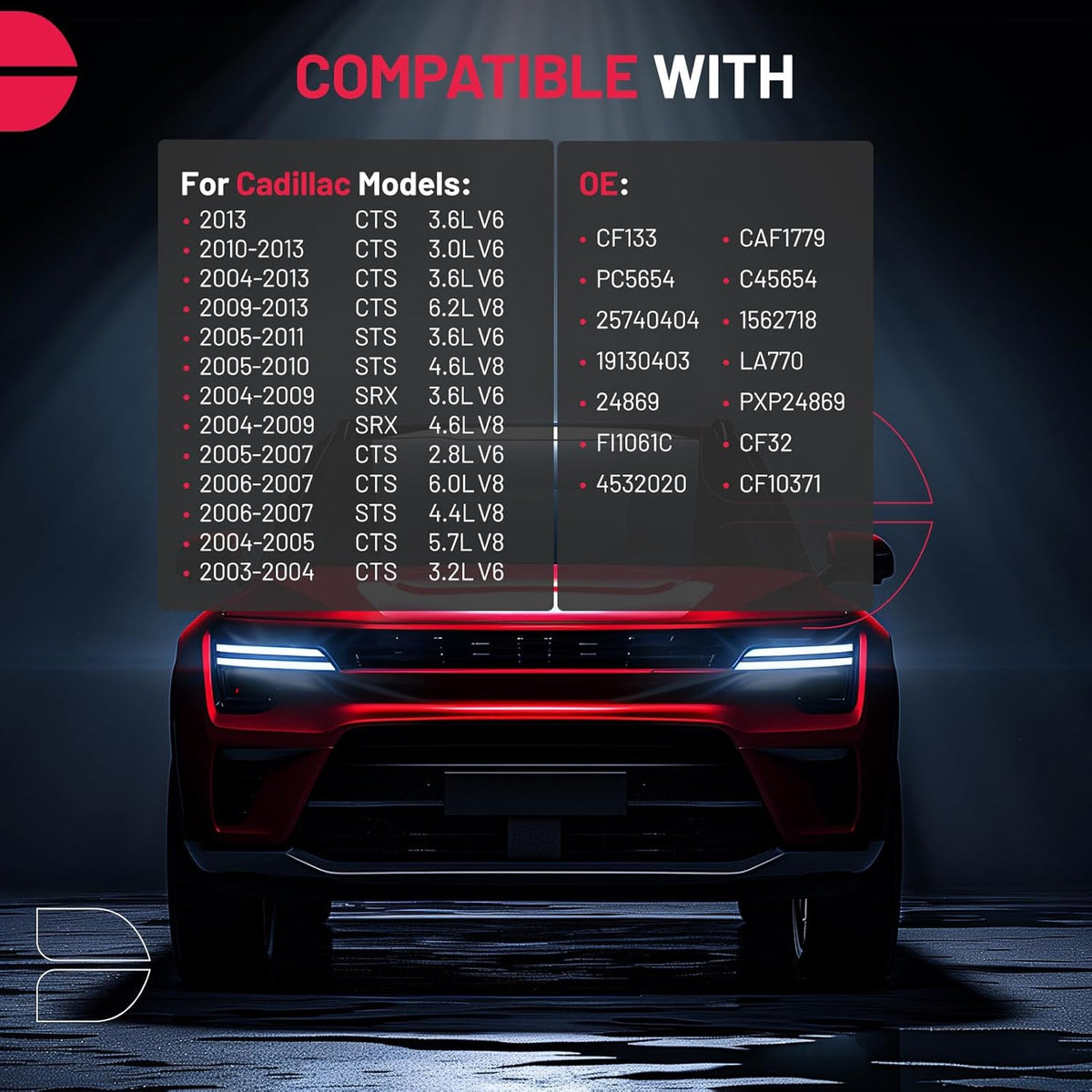 [Vehicle Fitment] Compatible with Cadillac CTS 2005-2007 2.8L V6, CTS 2010-2013 3.0L V6, CTS 2003-2004 3.2L V6, CTS 2013 3.6L V6, CTS 2004-2013 3.6L V6, CTS 2004-2005 5.7L V8, CTS 2006-2007 6.0L V8, CTS 2009-2013 6.2L V8, STS 2005-2011 3.6L V6, STS 2005-2010 4.6L V8, STS 2006-2007 4.4L V8, SRX 2004-2009 3.6L V6, SRX 2004-2009 4.6L V8